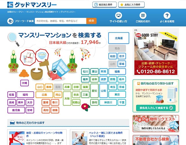 - 信頼のブランド「グッドステイ」全国に多数のマンスリーマンションを運営